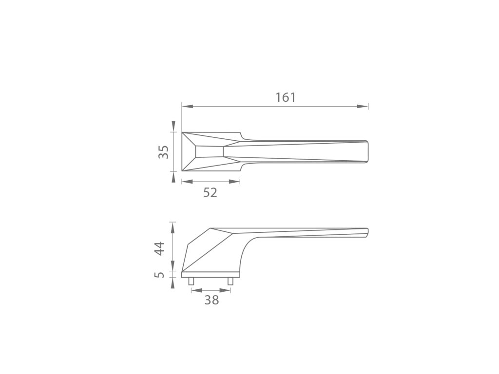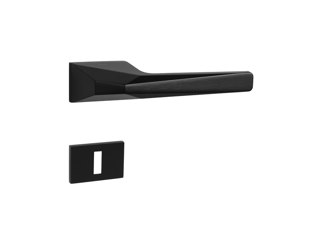 Rozetová klika na interiérové dveře s obdélníkovou rozetou je vyrobena z materiálů vysoké kvality - zamak a je povrchově upravena. Rozeta má rozměry 52 mm x 35 mm a tloušťku jen 5 mm. Samotná rozeta je součástí designu kliky.