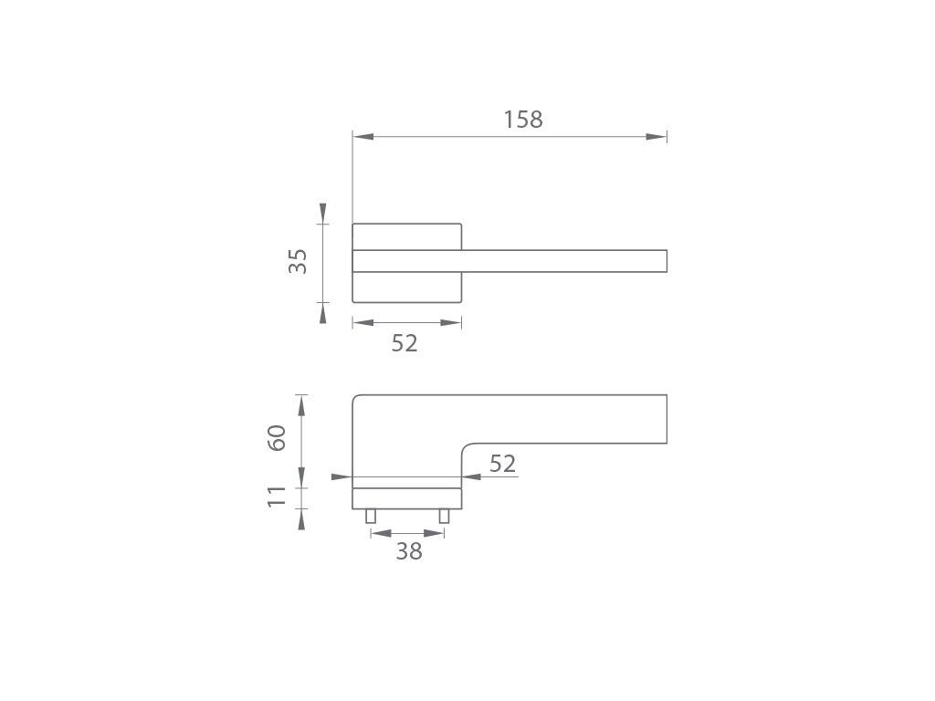 Rozetová klika na interiérové dveře s obdélníkovou rozetou je vyrobena z materiálů vysoké kvality - zamak a je povrchově upravena. Rozeta má rozměry 52 mm x 35 mm a standardní tloušťku 11 mm.