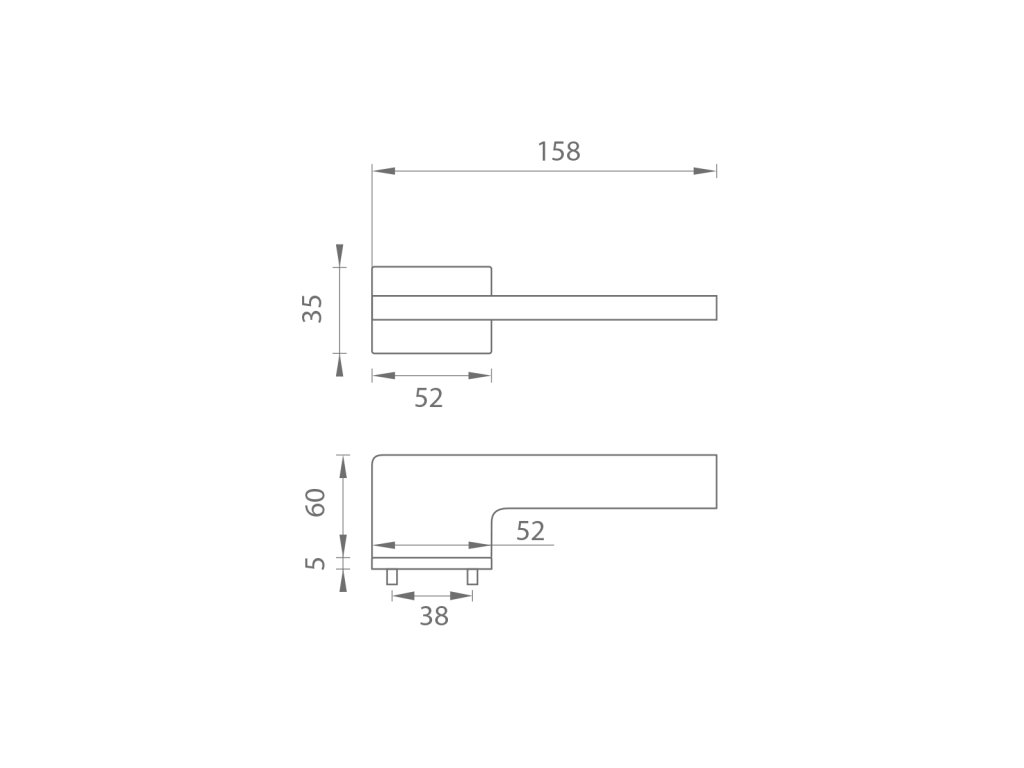 Rozetová klika na interiérové dveře s obdélníkovou rozetou je vyrobena z materiálů vysoké kvality - zamak a je povrchově upravena. Rozeta má rozměry 52 mm x 35 mm a tloušťku jen 5 mm. Samotná rozeta je součástí designu kliky.