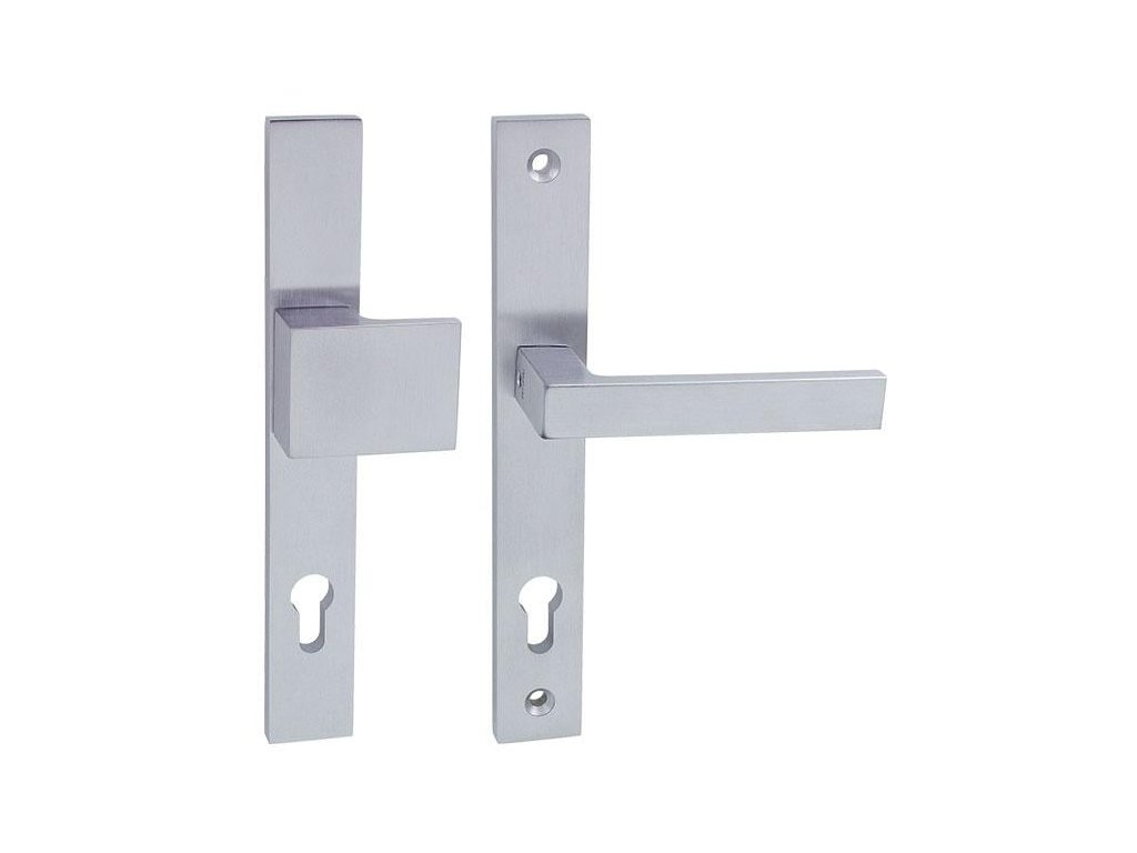 Zpevněné kování vyvinuté pro hliníkové, plastové nebo dřevěné dveře s úzkým profilem, kde se nevyžaduje bezpečnostní certifikát. Povrchová úprava chrom lesklý, chrom broušený, bílá, černá jsou vhodné i do exteriéru.