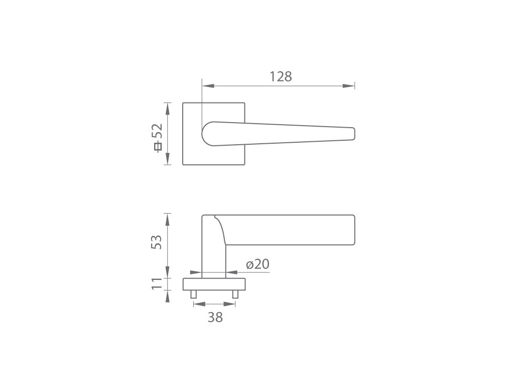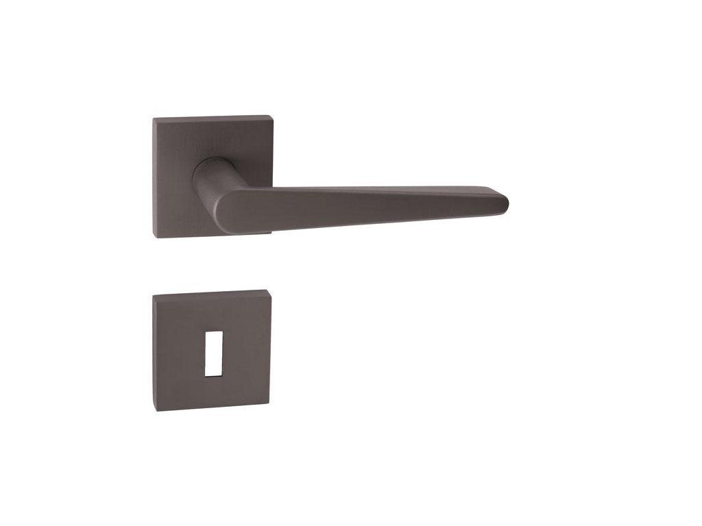 Rozetová klika na interiérové dveře s hranatou rozetou je vyrobena z materiálů vysoké kvality - mosaz a je povrchově upravena. Rozeta má rozměry 52 mm x 52 mm a standardní tloušťku 11 mm.
