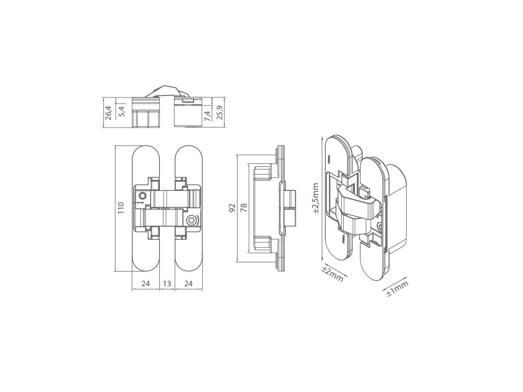 Vlastnosti skrytého závěsu: