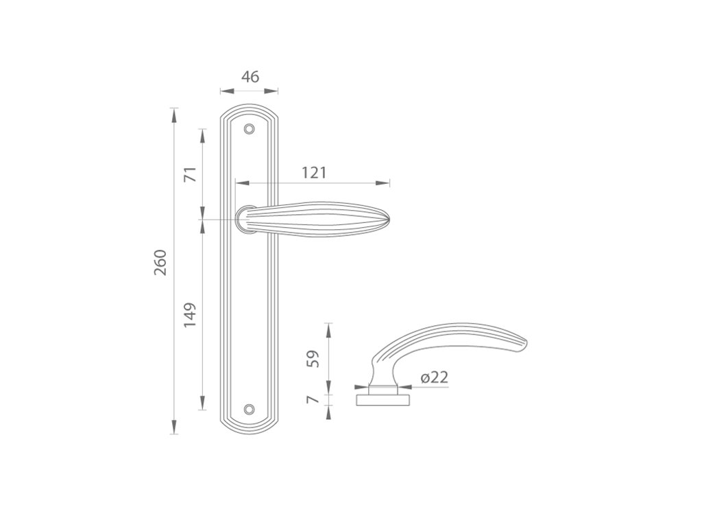 Štítová klika na interiérové dveře s rustikálním štítem je vyrobena z materiálů vysoké kvality - mosaz a je povrchově upravena. Rustikální štít má rozměry 46 mm x 260 mm a klika obsahuje vratný mechanismus.