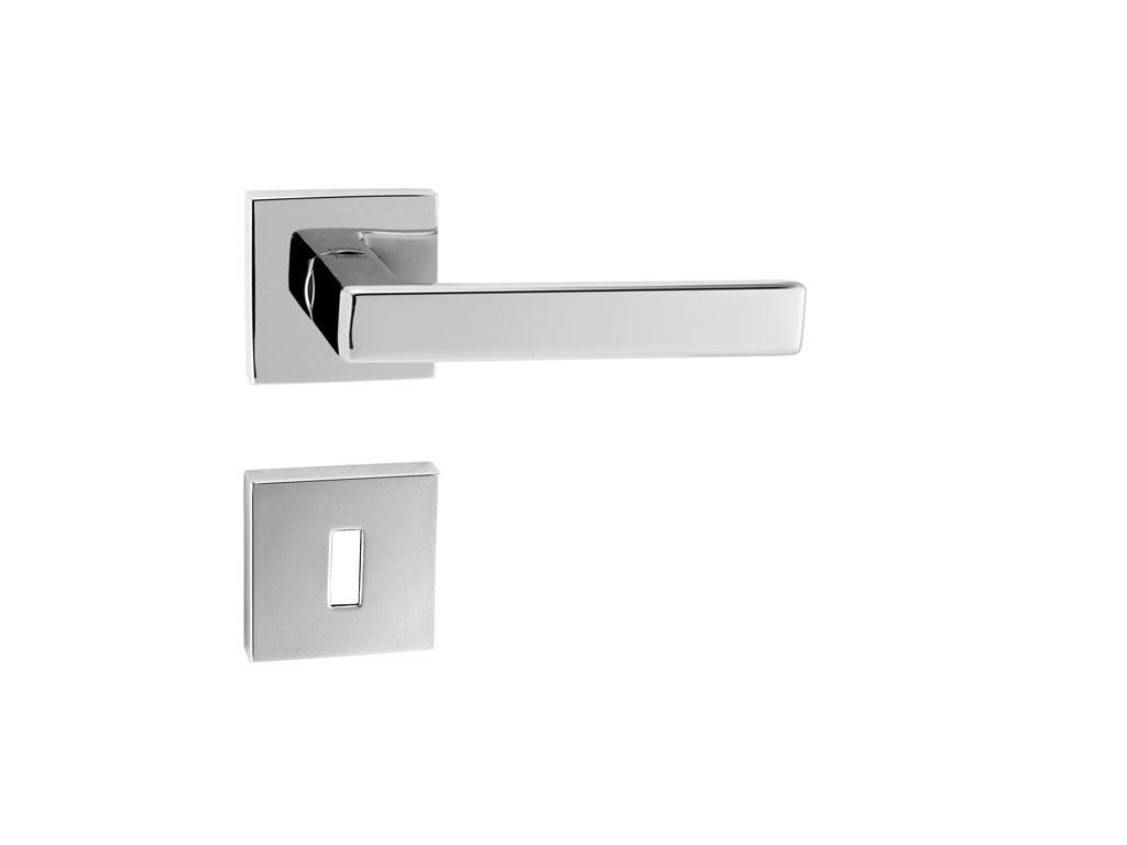 Rozetová klika na interiérové dveře s hranatou rozetou je vyrobena z materiálů vysoké kvality - mosaz a je povrchově upravena. Rozeta má rozměry 52 mm x 52 mm a standardní tloušťku 11 mm.