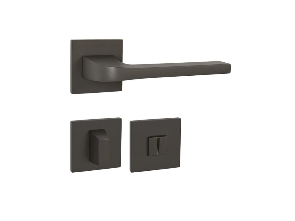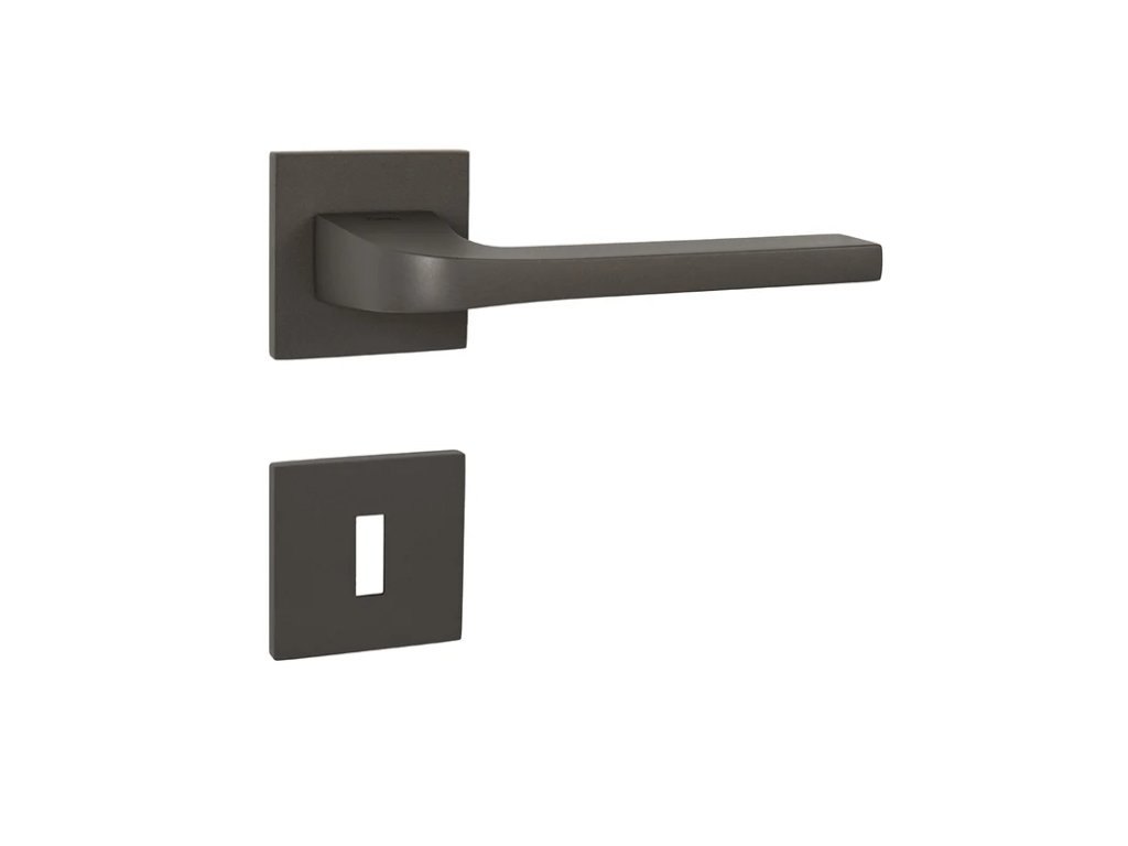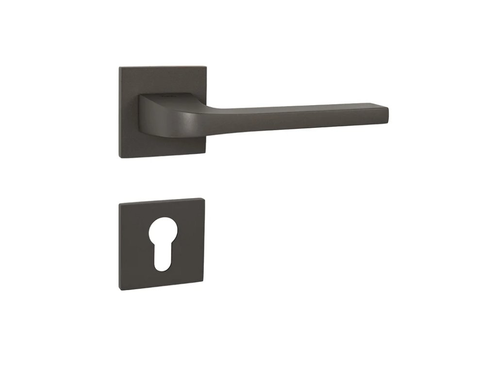 Rozetová klika na interiérové dveře s hranatou rozetou je vyrobena z materiálů vysoké kvality - zamak a je povrchově upravena. Rozeta má rozměry 52 mm x 52 mm a tloušťku pouze 5 mm.