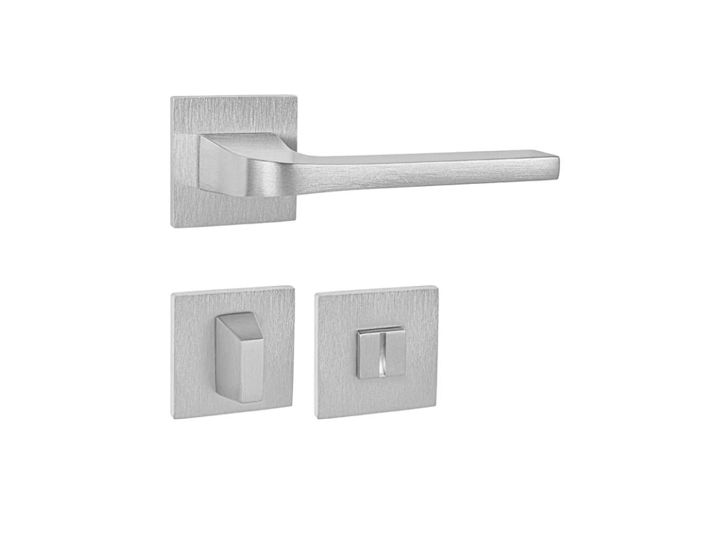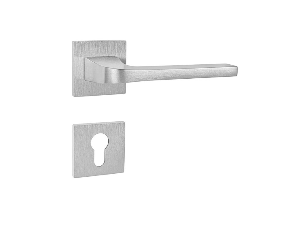 Rozetová klika na interiérové dveře s hranatou rozetou je vyrobena z materiálů vysoké kvality - zamak a je povrchově upravena. Rozeta má rozměry 52 mm x 52 mm a tloušťku pouze 5 mm.