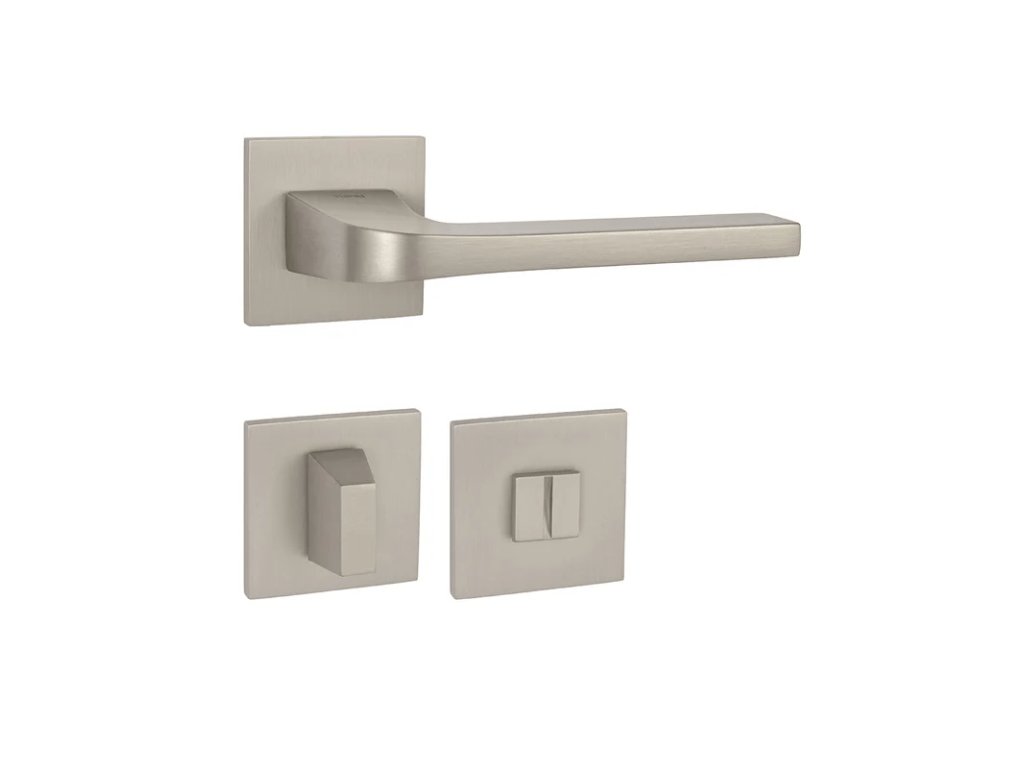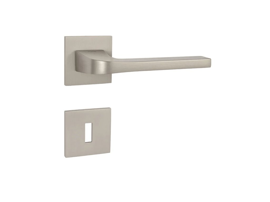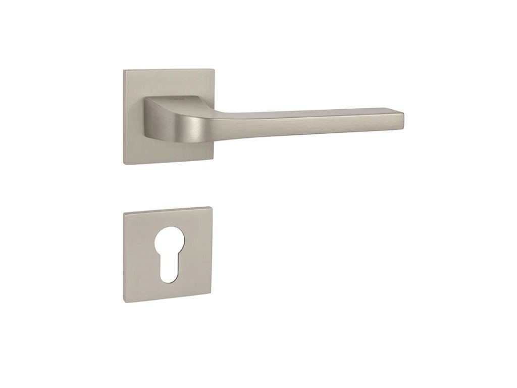 Rozetová klika na interiérové dveře s hranatou rozetou je vyrobena z materiálů vysoké kvality - zamak a je povrchově upravena. Rozeta má rozměry 52 mm x 52 mm a tloušťku pouze 5 mm.