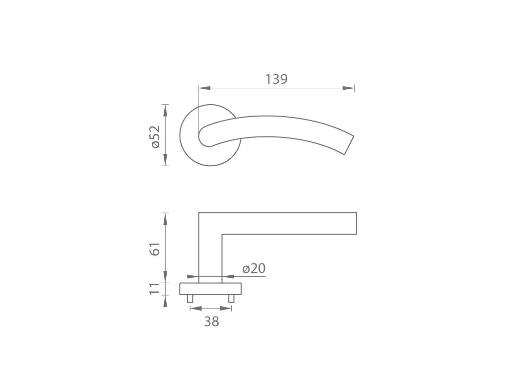 Rozetová klika na interiérové dveře s kulatou rozetou je vyrobena z vysoce kvalitní nerezavějící oceli, známé jako nerez a je povrchově upravena. Rozeta má průměr 52 mm a standardní tloušťku 11 mm.