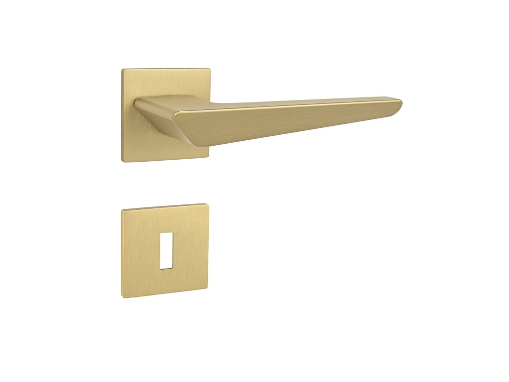 Rozetová klika na interiérové dveře s hranatou rozetou je vyrobena z materiálů vysoké kvality - zamak a je povrchově upravena. Rozeta má rozměry 52 mm x 52 mm a tloušťku pouze 5 mm.