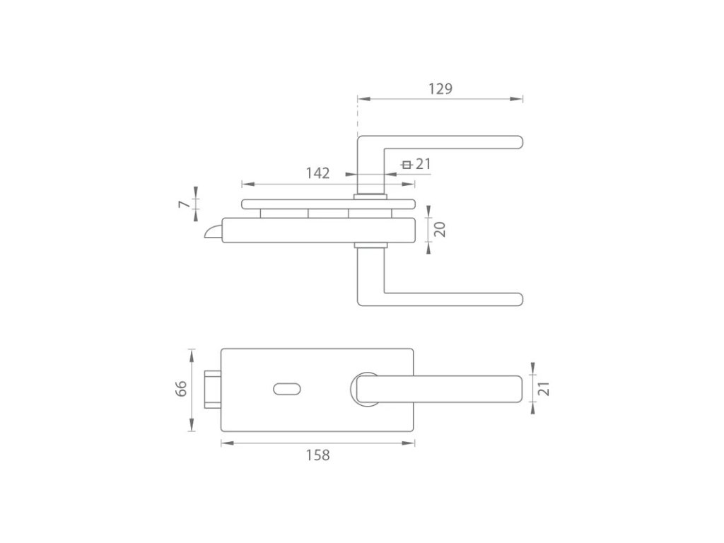 Zámek je vhodný pro skleněné dveře s tloušťkou 8 – 10 mm. Otvor pro kliku obsahuje vymezovací mechanismus pro maximální eliminování vůle čtyřhranu. Mechanismus zámku umožňuje nastavení síly pružiny a napomáhá udržování kliky v horizontální poloze.