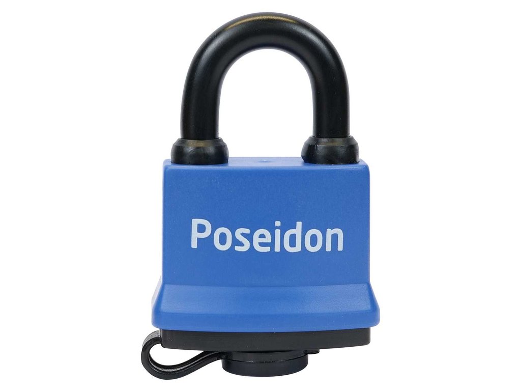 Ocelový voděodolný visací zámek s plastovým krytem.
