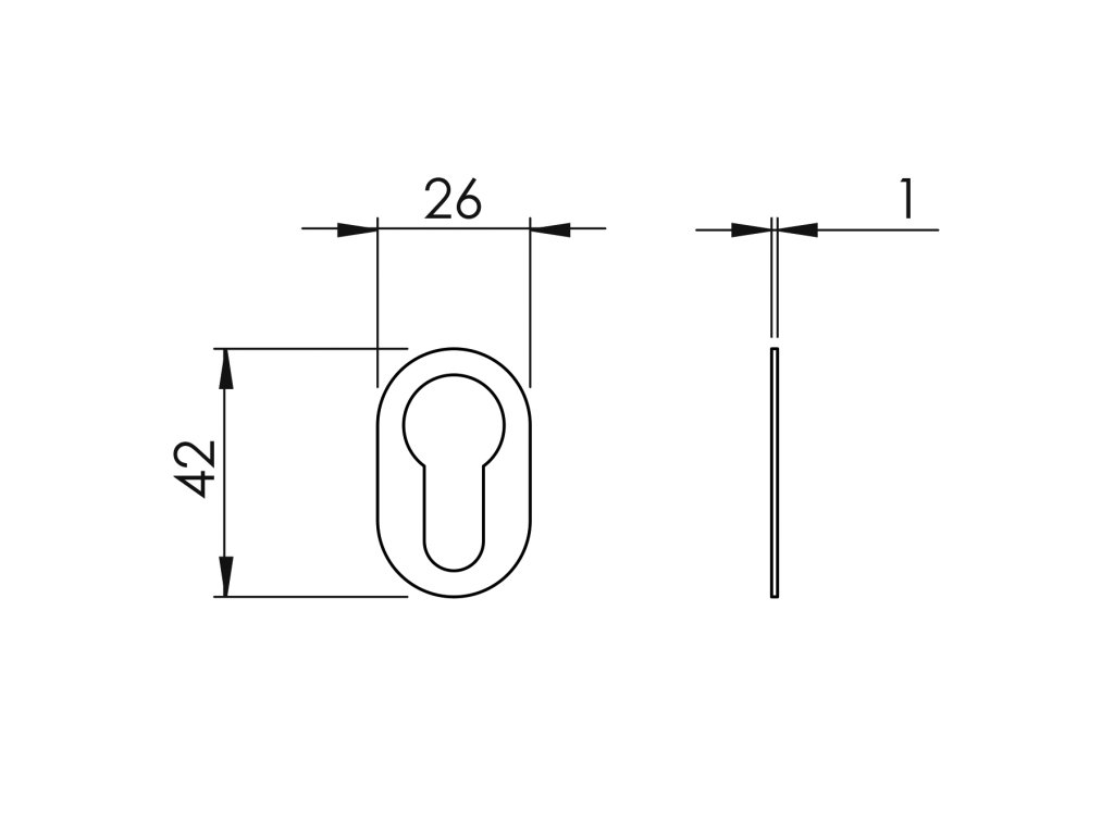 Úzká oválná rozeta je vyrobena z kvalitního materiálu zamak a je povrchově upravena. Rozeta má rozměr 26 x 42 mm a tloušťku 1 mm. Rozeta má oválný otvor pro interiérový klíč (BB) a otvor pro cylindrickou vložku (PZ). Balení obsahuje 2 kusy rozet (pár). Rozety je možné kombinovat s kteroukoliv klikou z kolekce NUDA.