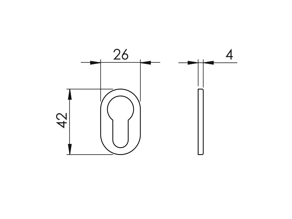 Úzká oválná rozeta je vyrobena z kvalitního materiálu zamak a je povrchově upravena. Rozeta má rozměr 26 x 42 mm a tloušťku 4 mm. Rozeta má oválný otvor pro interiérový klíč (BB) a otvor pro cylindrickou vložku (PZ). Balení obsahuje 2 kusy rozet (pár). Rozety je možné kombinovat s kteroukoliv klikou z kolekce NUDA.