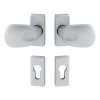 Vyosené madlo ke klikám na dveře je vyrobeno z hliníku a je povrchově upraveno. Madlo ke klikám obsahuje pružinovou mechaniku a nabízíme ho v provedení madlo pevné (kus) nebo madlo otočné (kus). Z hlediska odolnosti povrchové úpravy je odolné vůči povětrnostním podmínkám (slunce, voda, mráz) a tudíž je vhodné do exteriéru. Poskytujeme prodlouženou záruku 5 let.