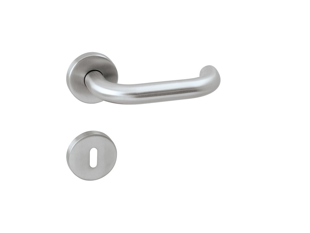 Rozetová klika na interiérové ​​dveře s kulatou rozetou je vyrobena z vysoce kvalitní nerezavějící oceli, známé jako nerez a je povrchově upravena.