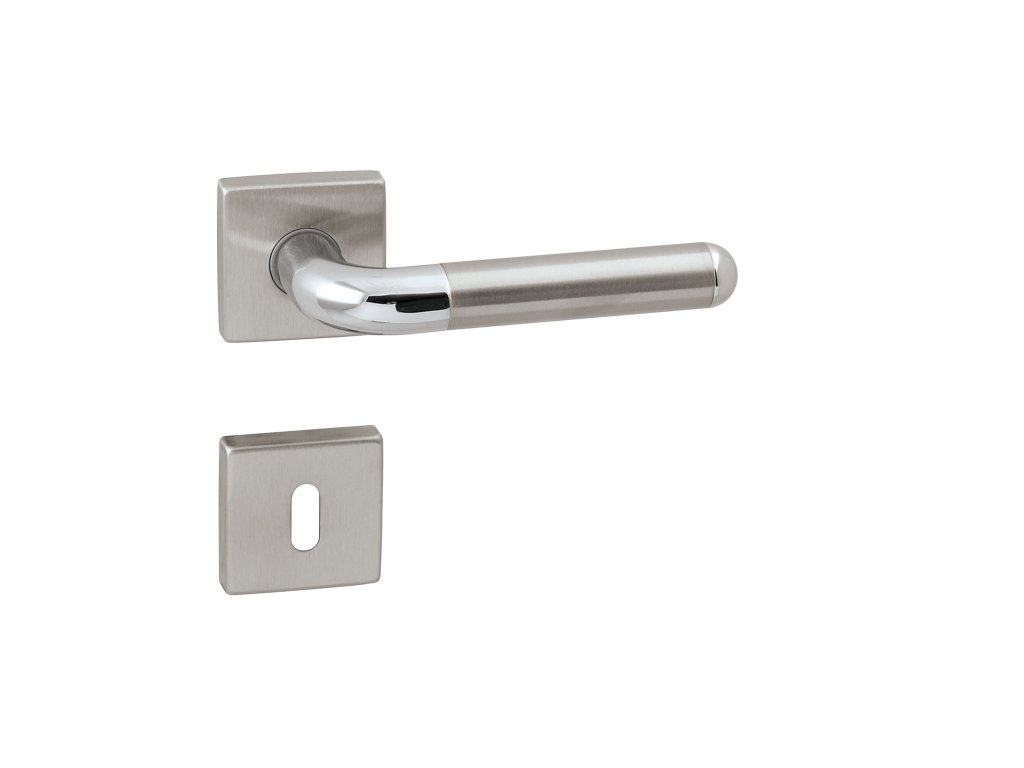 Rozetová klika na interiérové ​​dveře s hranatou rozetou je vyrobena z vysoce kvalitní nerezavějící oceli, známé jako nerez a je povrchově upravena.