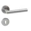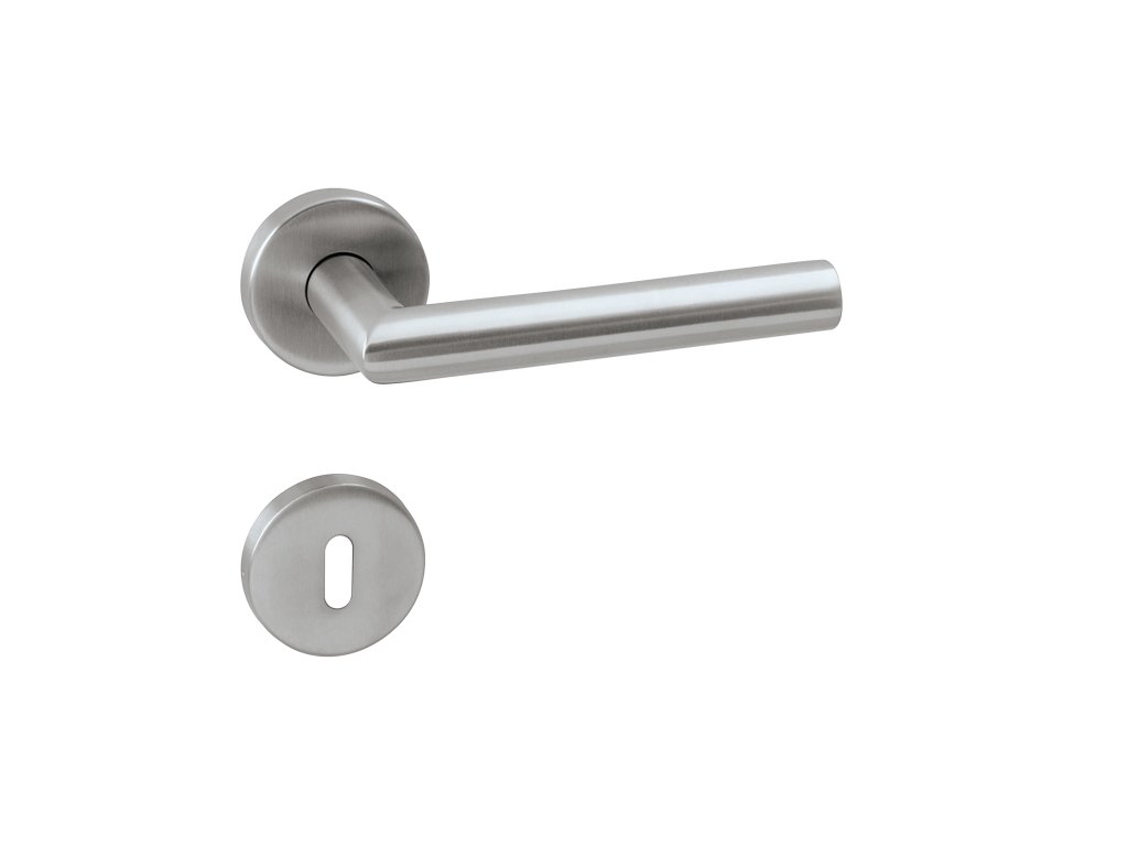 Rozetová klika na interiérové ​​dveře s kulatou rozetou je vyrobena z vysoce kvalitní nerezavějící oceli, známé jako nerez a je povrchově upravena.