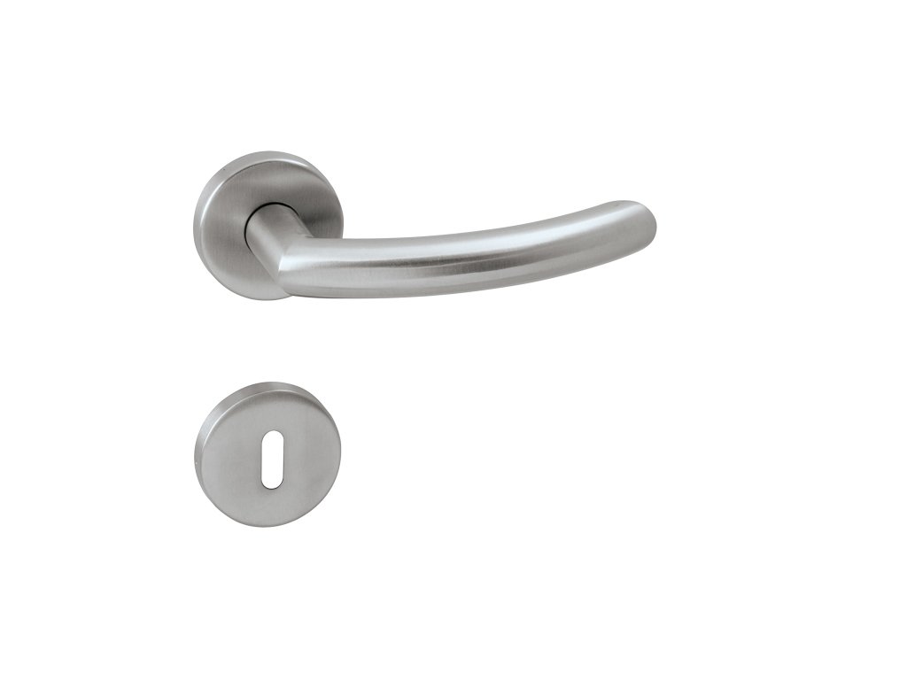 Rozetová klika na interiérové dveře s kulatou rozetou je vyrobena z vysoce kvalitní nerezavějící oceli, známé jako nerez a je povrchově upravena.