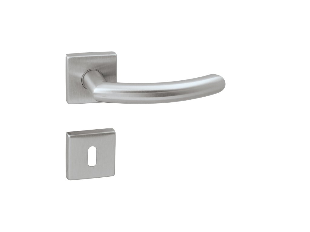 Rozetová klika na interiérové dveře s hranatou rozetou je vyrobena z vysoce kvalitní nerezavějící oceli, známé jako nerez a je povrchově upravena.