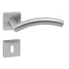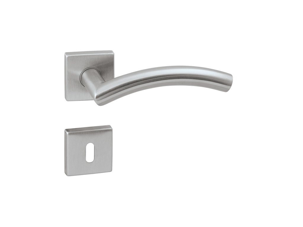 Rozetová klika na interiérové ​​dveře s hranatou rozetou je vyrobena z vysoce kvalitní nerezavějící oceli, známé jako nerez a je povrchově upravena.