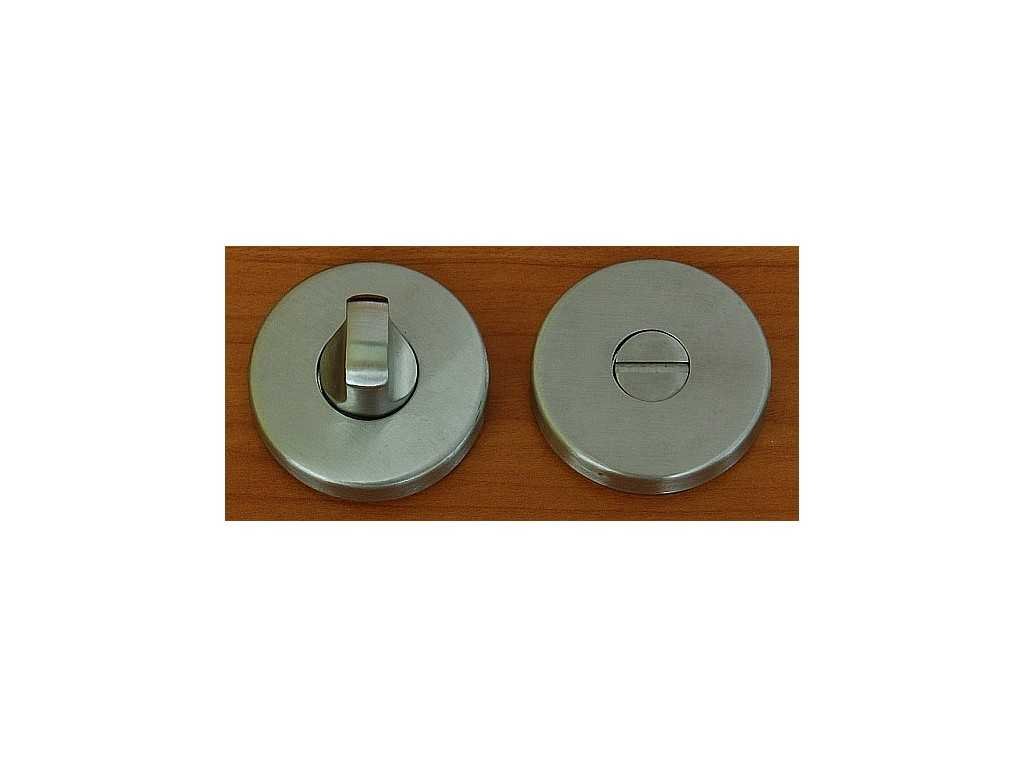 Sada obsahuje pár kulatých štítů s WC kličkou bez ukazatele a příslušenství k namontování na dveře.