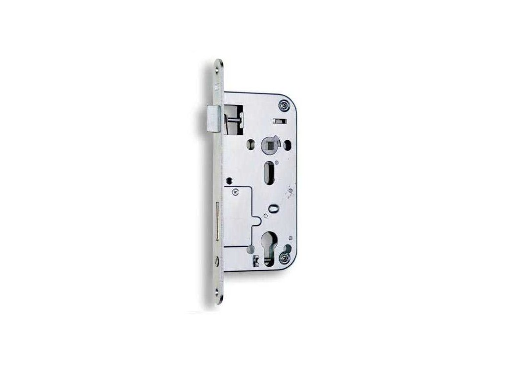 Zámek dveřní bezpečnostní zadlabací vložkový, s pojistkou a převodem, dvouzápadový se zvýšenou odolností proti překonání.