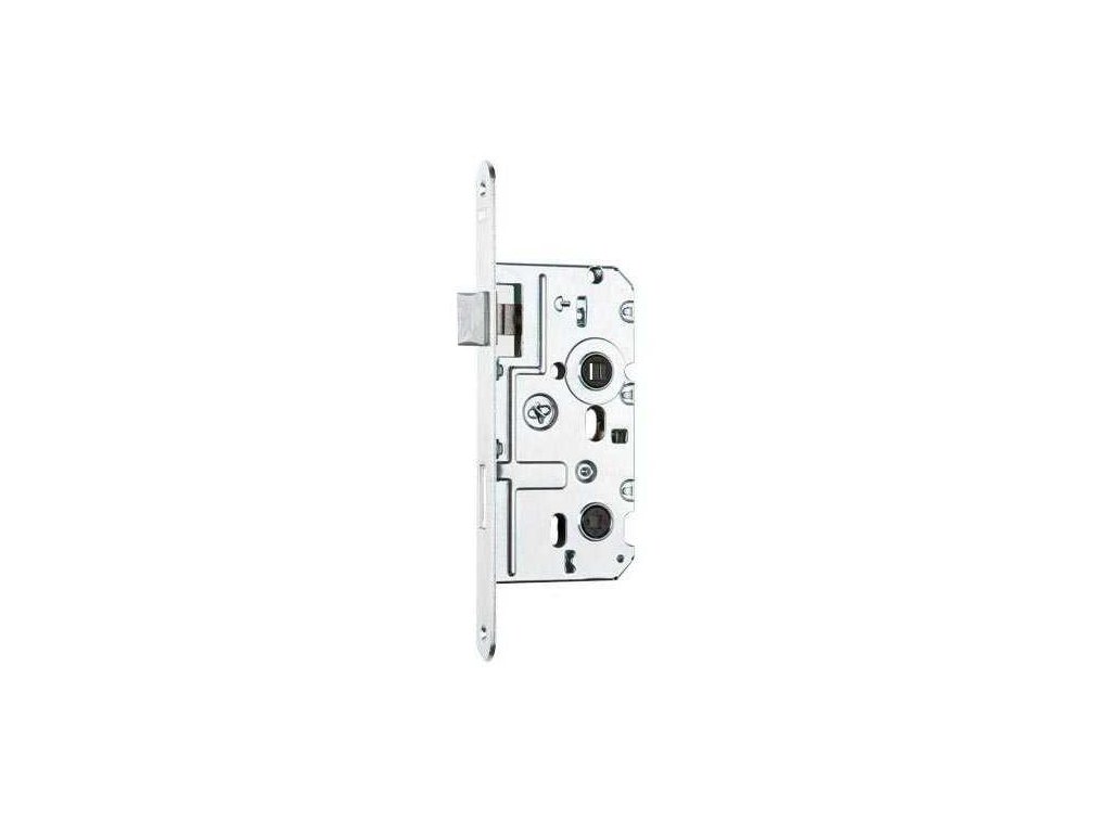 Zámek dveřní zadlabací WC, s plastovou střelkou, se zúženým čelem o 2 mm (C).