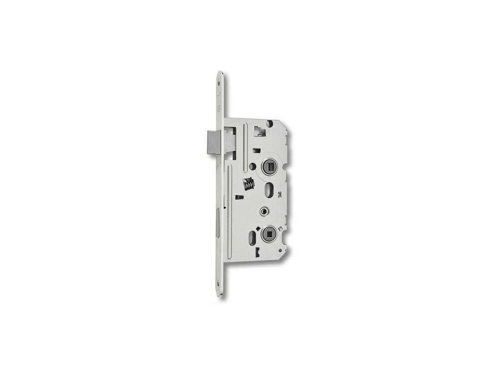Zámek dveřní zadlabací WC, s plastovou střelkou a závorou, jednozápadový.