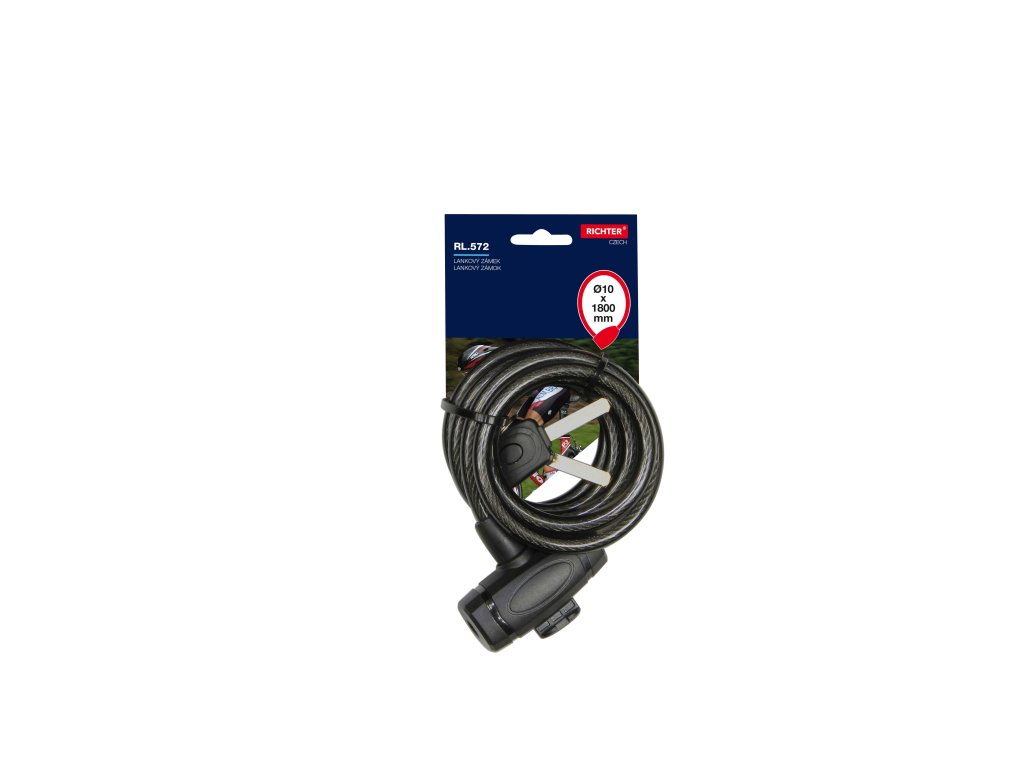 Zámek lankový na kolo s osvětlením RL.572.CRN d10x1.800mm černý 2kl.
