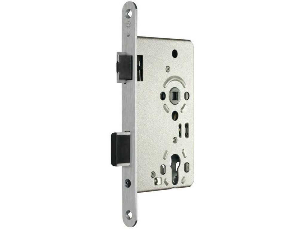 Dveřní zámek pro interiérové dveře s tichou střelkou a nerezovým čelem.