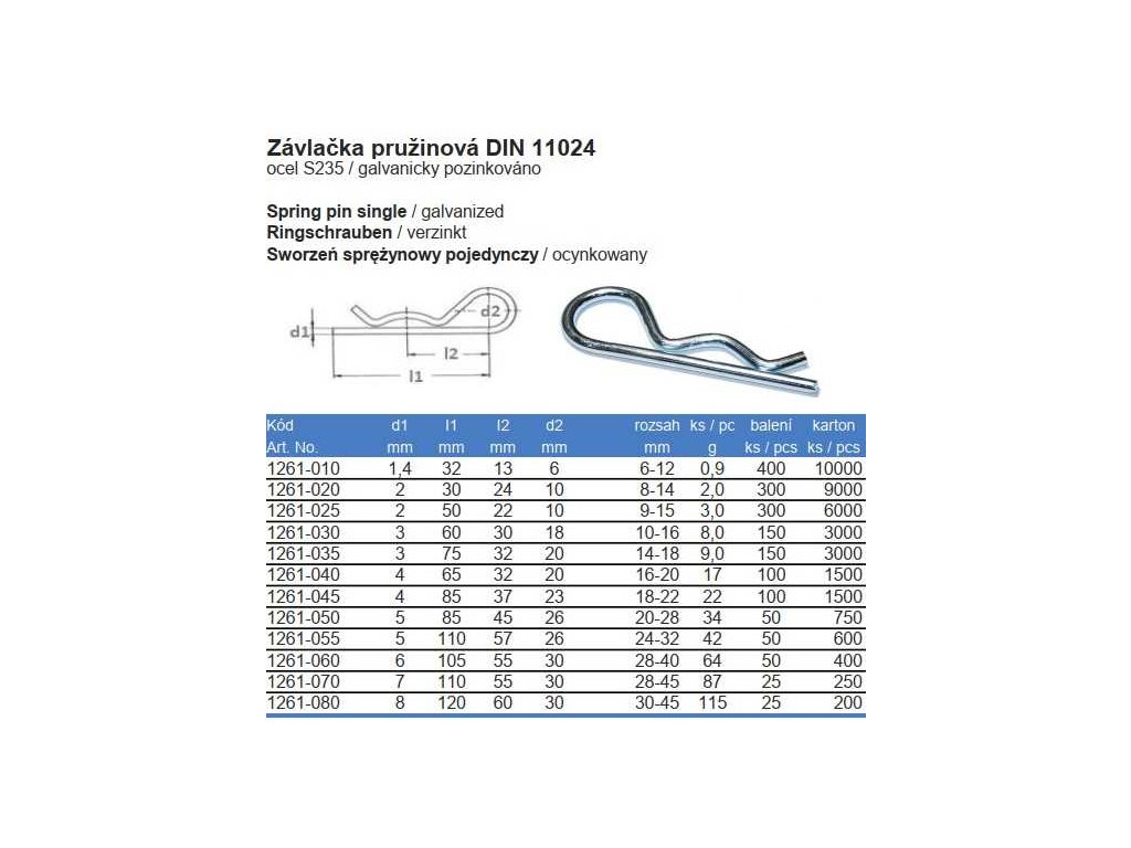 Závlačka pružinová jednoduchá DIN 11024 d4x64mm pZn*